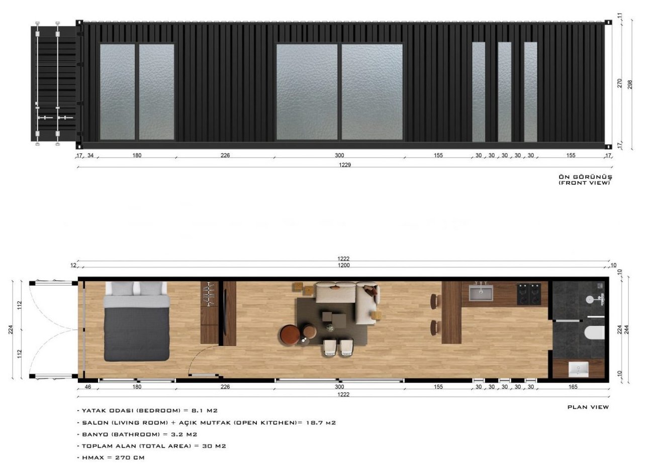 • Sürme Cam Kapılar: Dış camlar tamamen Şişe Cam üründür ve 10 yıl cam garantilidir. PVC pencere sistemlerinde Egepen Deceuninck yalıtımlı ve izolasyonlu seri kullanılmıştır. Tüm camlar çift sürme konfor sistem ve Kale kilit mekanizmalıdır. 9 ve 12 metre uzunluğundaki ürünlerde 2 adet 200x220cm, 6 metre uzunluğundaki ürünlerde 1 adet 200x220cm çift sürme ve 90x220cm tek kanat kapı mevcuttur.
